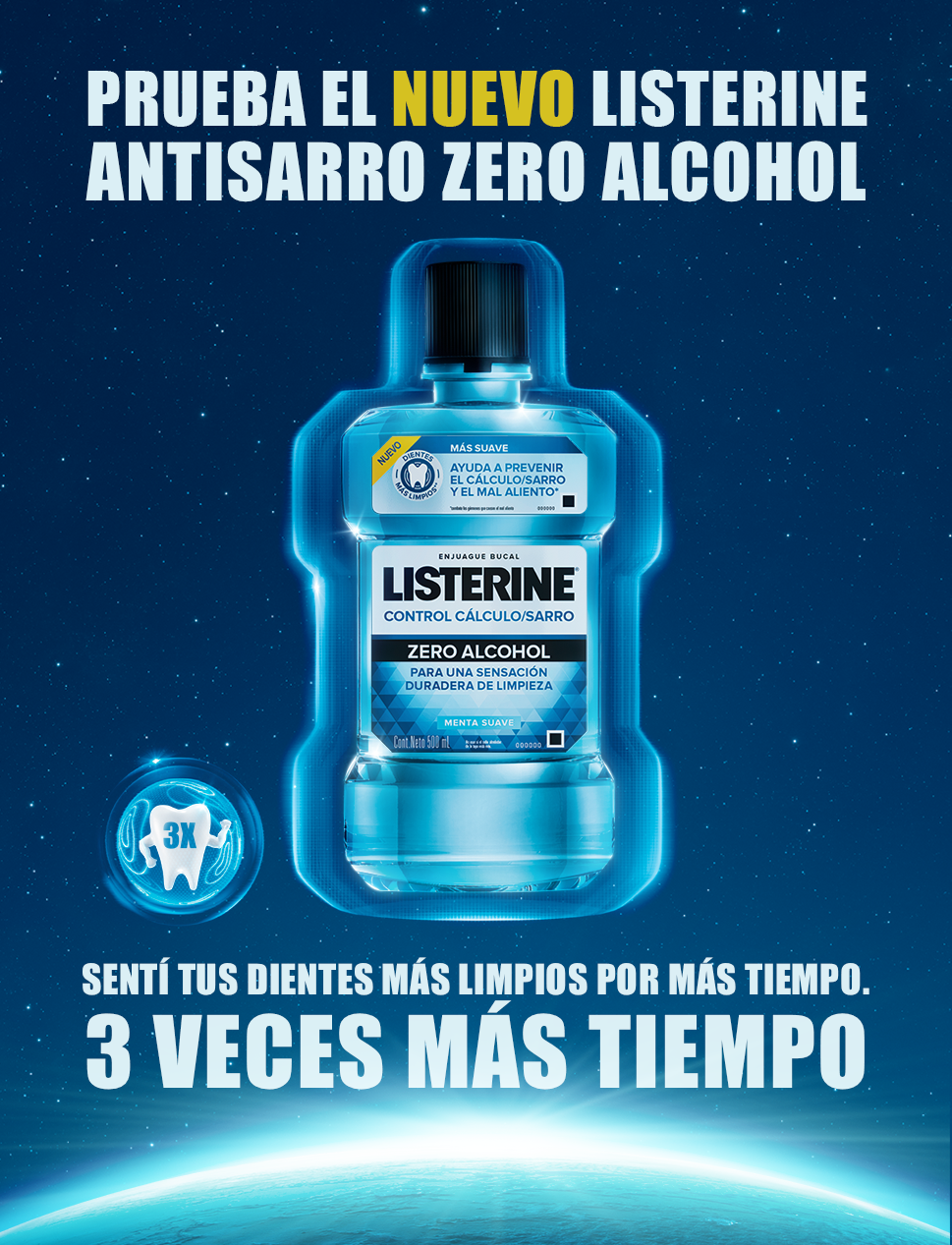 Para asegurar tener una boca limpia usa LISTERINE® dos veces al día.